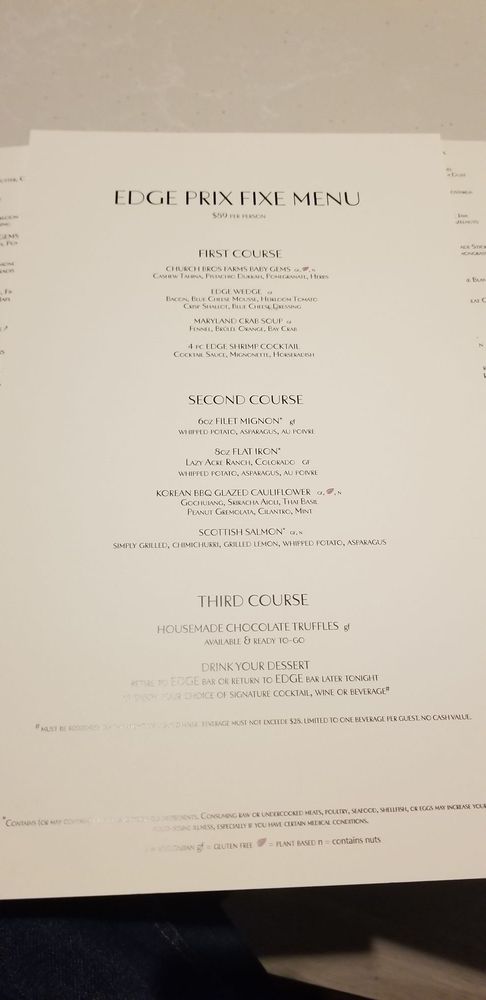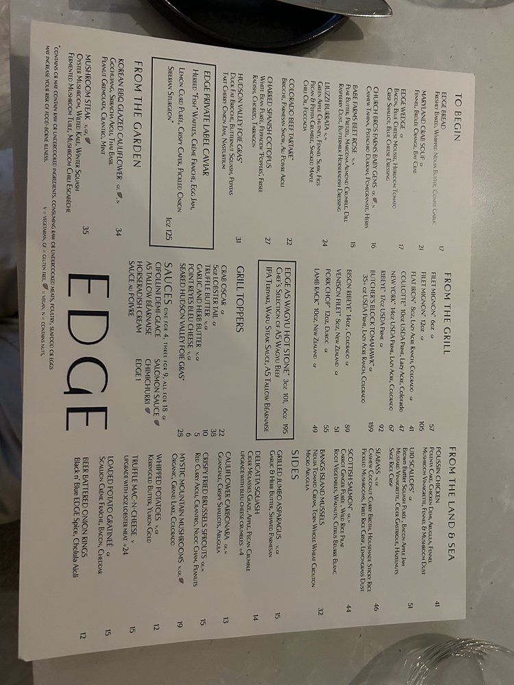 EDGE Restaurant and Bar located at 1111 14th St Four Seasons Hotel Denver is an upscale dining establishment offering a wide range of options including steaks, breakfast & brunch, and a full bar. The restaurant provides a luxurious ambiance, perfect for a fancy date night or special celebration. Customers have praised the attentive service, unique dishes, and fresh ingredients. The truffle Mac, lobster sides, and mushroom items are standout favorites. While the prices are on the higher end, patrons appreciate the quality of the food and attention to detail in presentation. Some have noted the smaller portion sizes but overall found the experience delightful. With options for vegan and vegetarian diners, as well as special features like pool tables and outdoor seating, EDGE Restaurant and Bar caters to a diverse clientele seeking a sophisticated dining experience.
